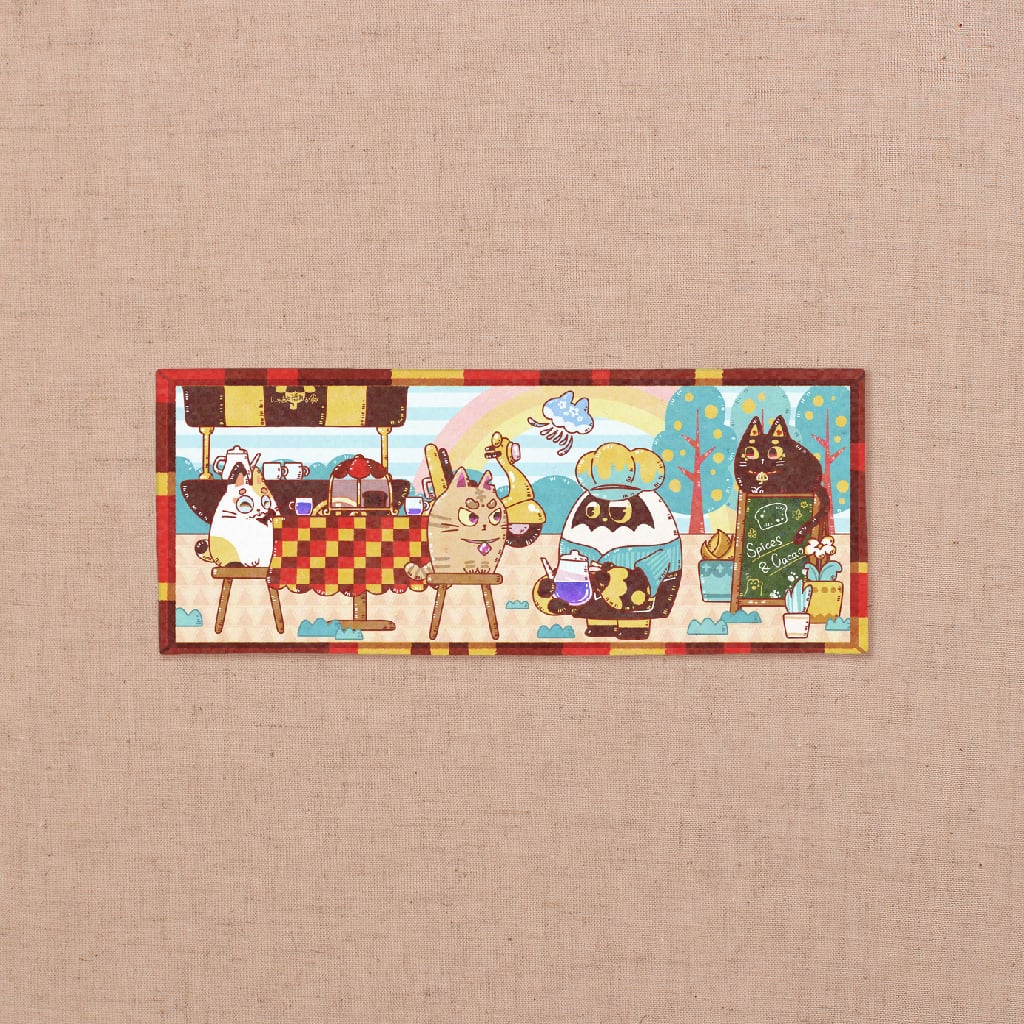 そこには昼のカフェ。お茶ノ助ときなこが、ケーキを前にご機嫌だ。