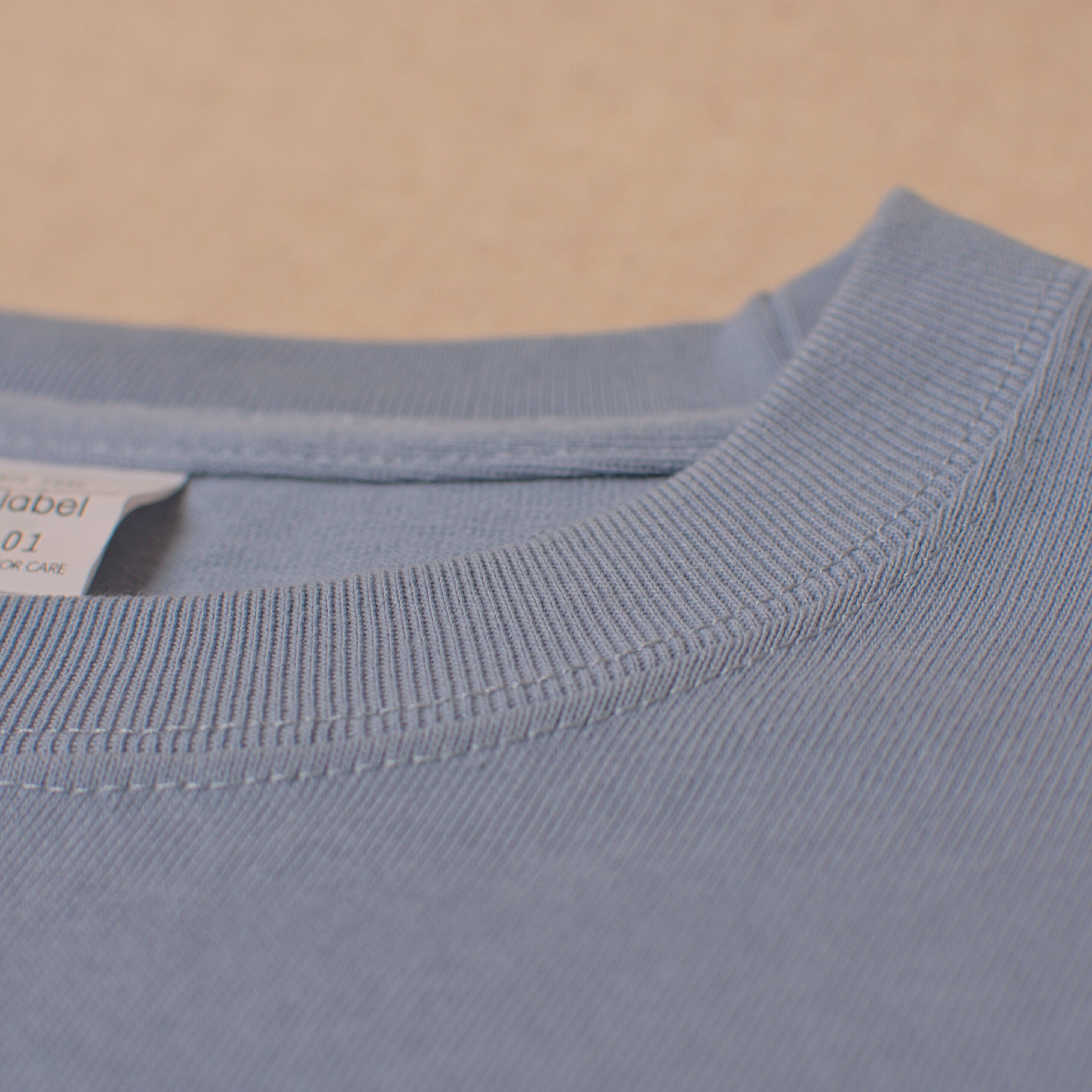 「このTシャツは、お茶ノ助さんの手とパウンドケーキが描かれているんです。淡い青に白い絵が浮かんで、見ているだけで心が和みますね」